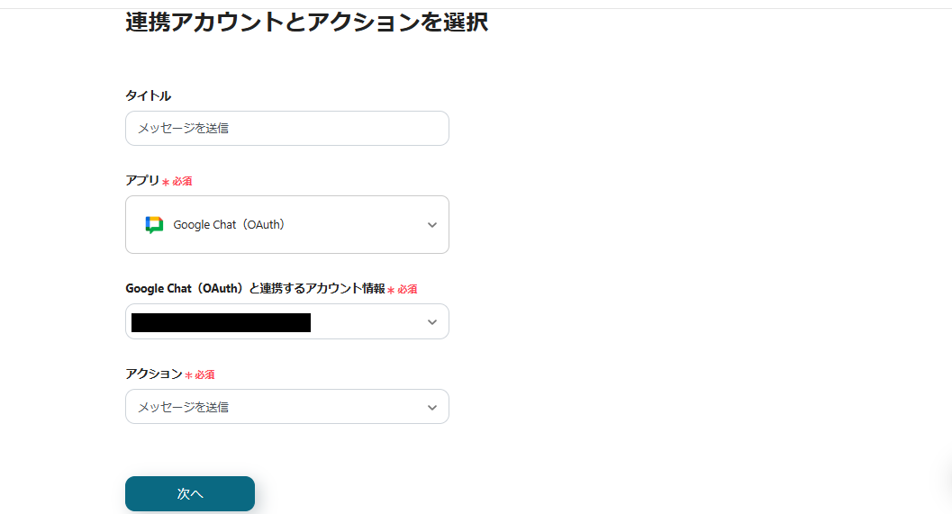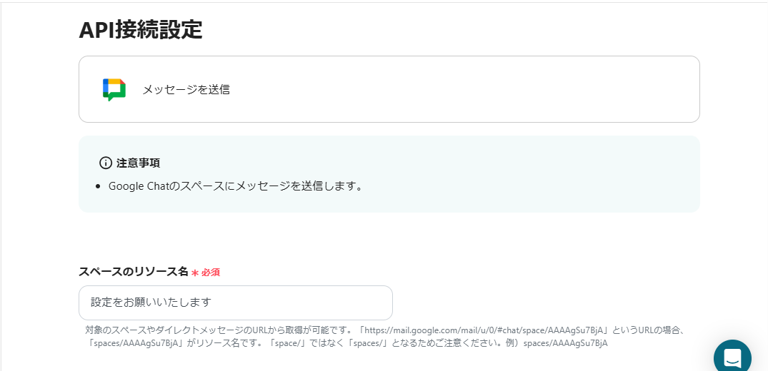 続いて、自動通知するGoogle Chatのメッセージ内容を設定していきます。