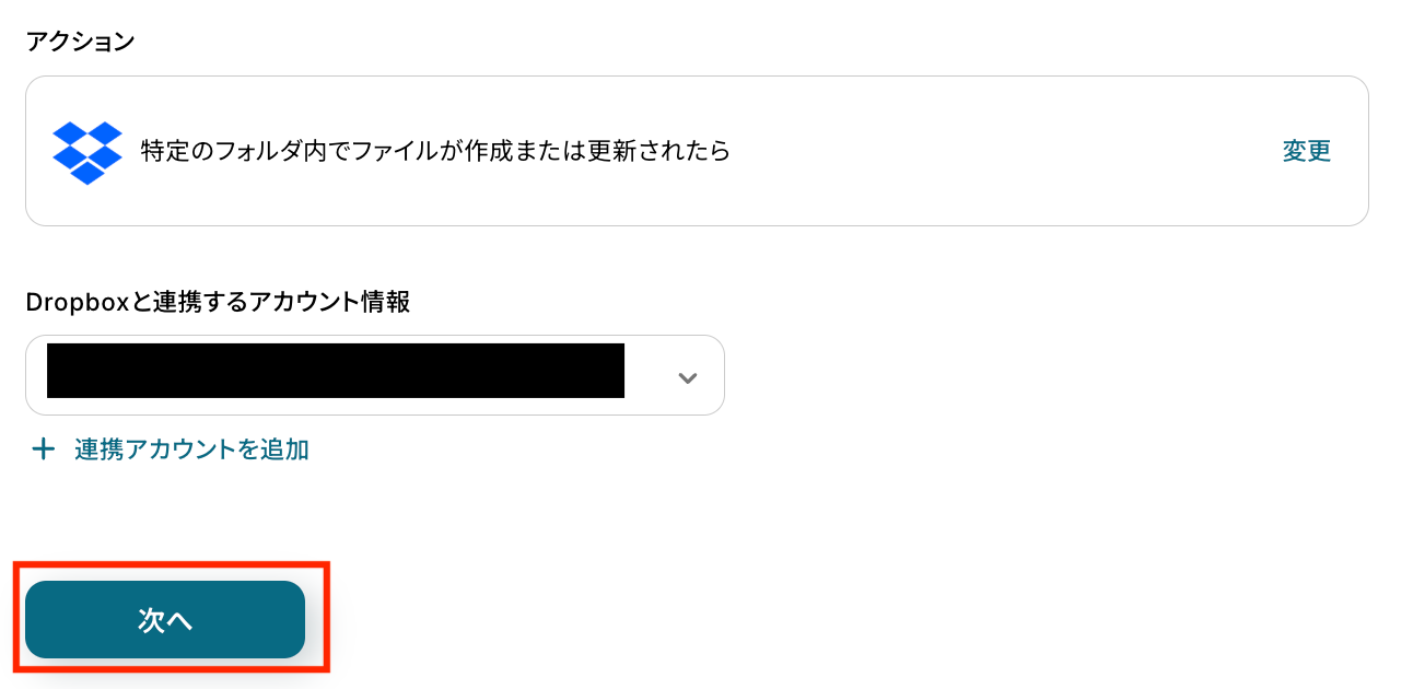 ステップ3:Dropboxで特定フォルダの作成または更新を監視するトリガーを設定する