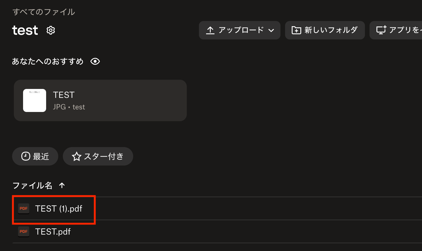 ここでは「TEST.pdf」と「TEST (1).pdf」がある状態にします。