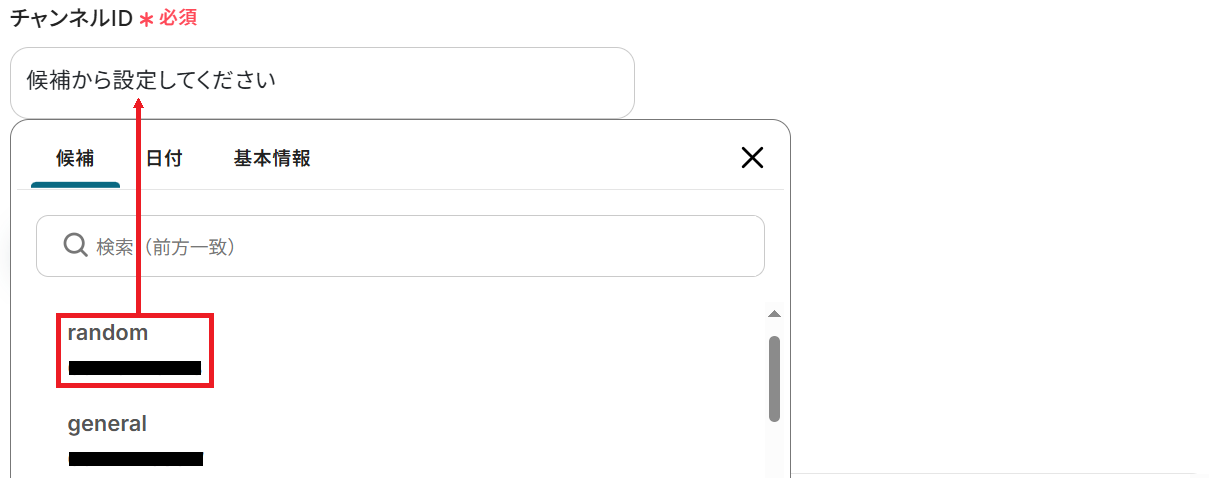 チャンネルIDを候補から選択します。