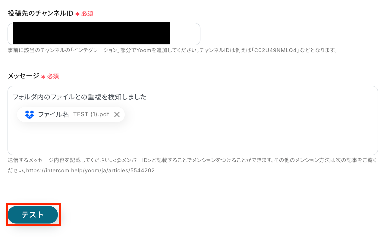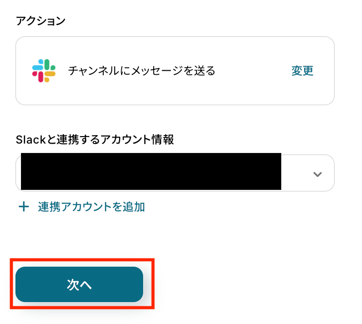 - Slackでメッセージを送るアクションを設定する際に、通知先としたいチャンネルIDを任意で設定してください