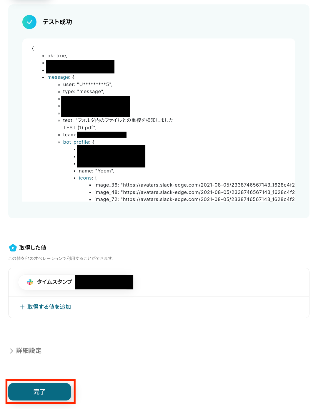 ステップ6:Slackに重複ファイル検知の通知を送る