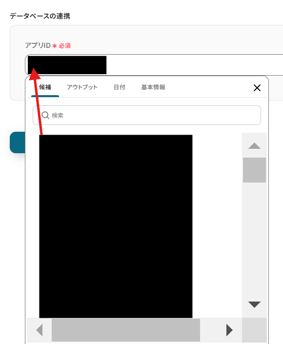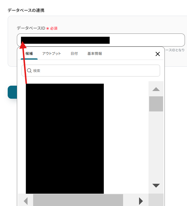 「データベースID」は、入力欄をクリックして表示される候補から選択してください。