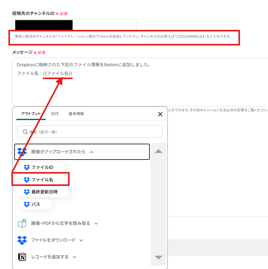 ・DropboxとNotionのそれぞれをYoomと連携してください。