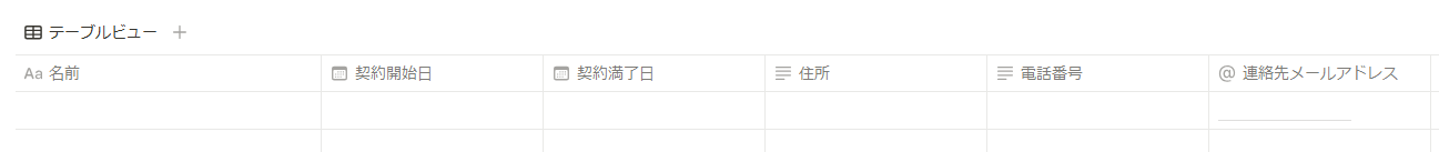 連携する前に、Notionにてレコードを追加するテーブルを作成しましょう!
