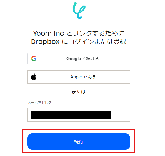 2.表示された画面で、メールアドレスを入力し、「続行」をクリックしてください。