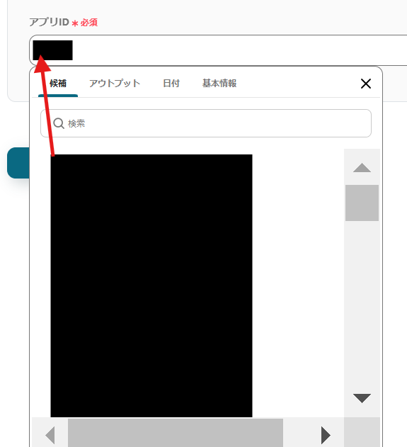 「アプリID」は、入力欄をクリックして表示される候補から選択してください。