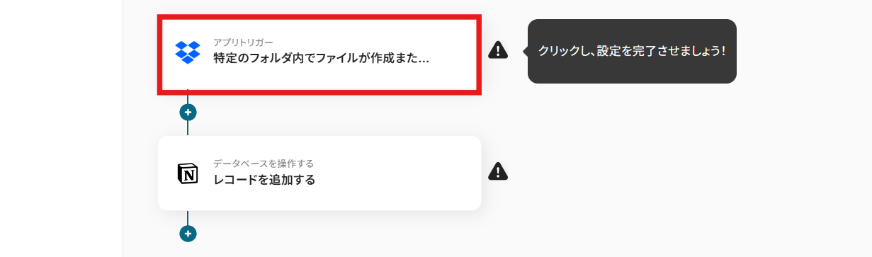 - Dropboxのトリガー設定およびNotionのアクション設定