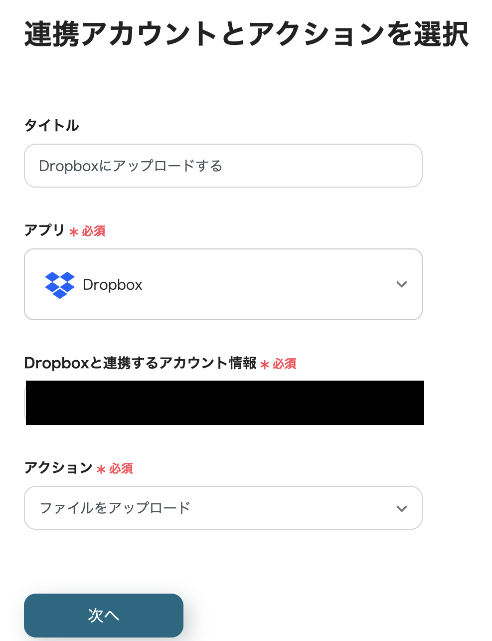 「Dropboxと連携するアカウント情報」:合っているか確認