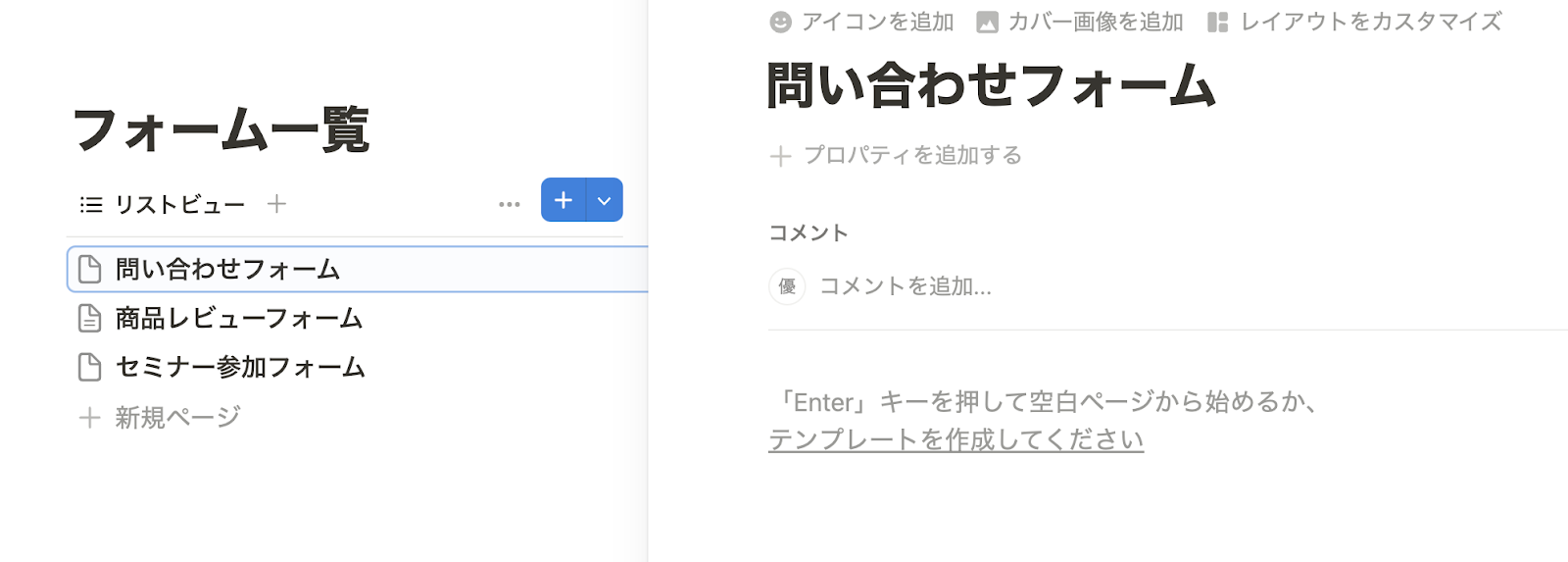 例えば、顧客との連絡手段として、問い合わせフォームを活用している場合、カスタマーサポートチームが問い合わせフォームの回答を処理する際、Notion上で回答を整理することで、対応状況を一目で確認でき、対応漏れを防ぐことができます。