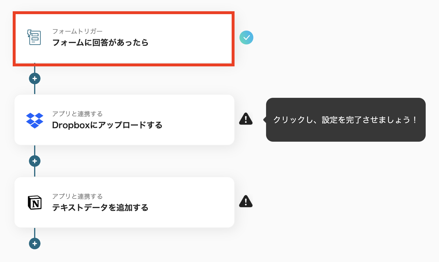 ※Googleフォームをトリガーとして使用する方法はこちらをご確認ください。