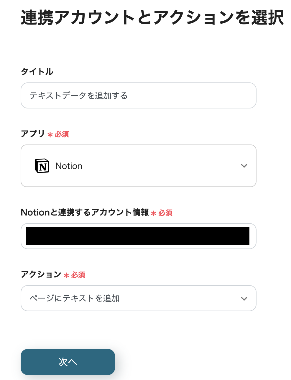 「Notionと連携するアカウント情報」:合っているか確認