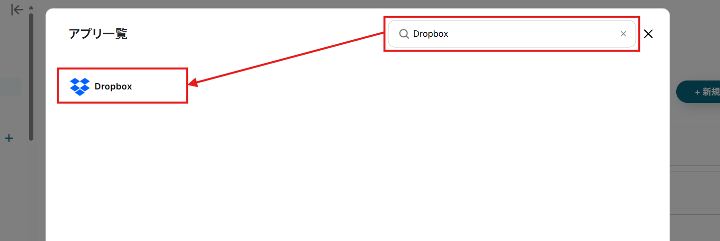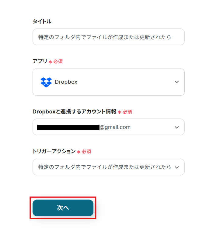 1.Dropboxの「特定のフォルダ内でファイルが作成または更新されたら」をクリック。
