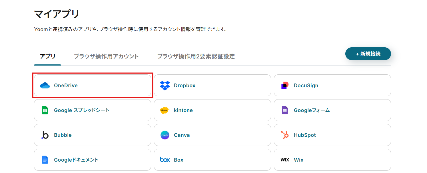 DropboxとOneDriveをマイアプリに登録し、Yoomと連携させます。