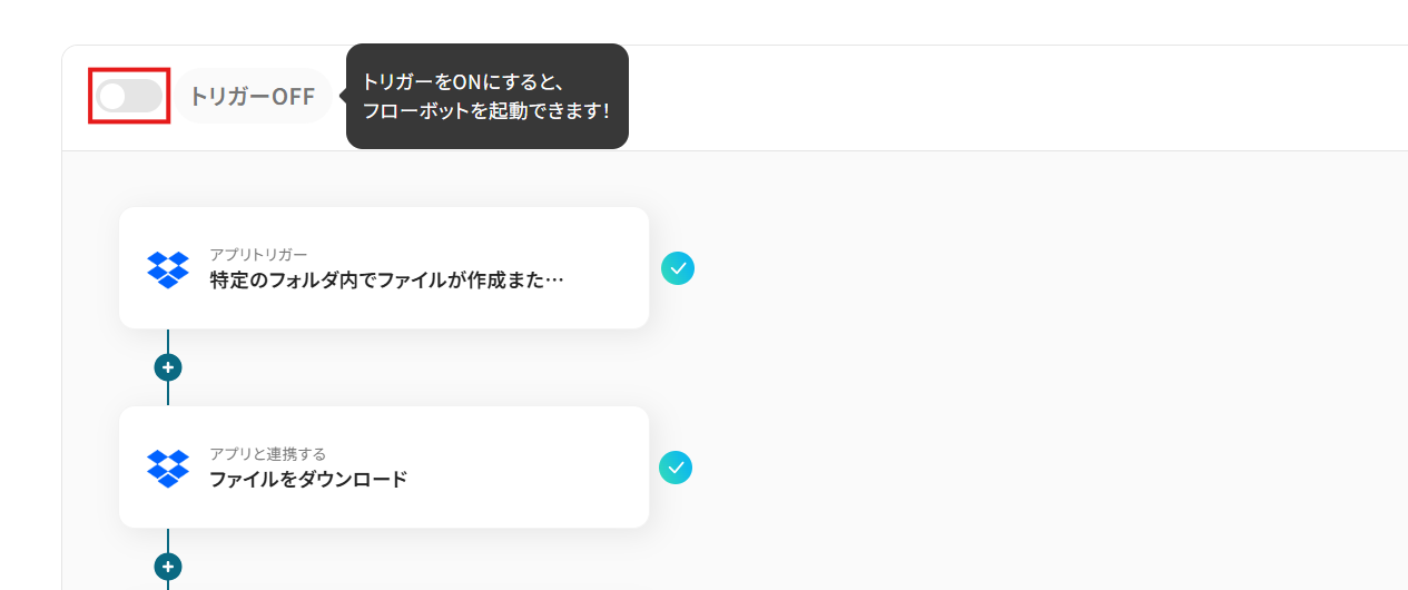 ステップ6:フロー稼働の準備(トリガーをONに設定)