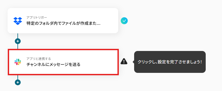 - Dropboxのトリガー設定およびSlackのアクション設定