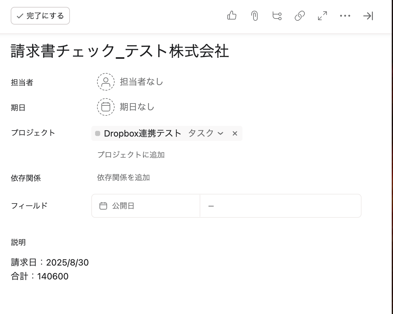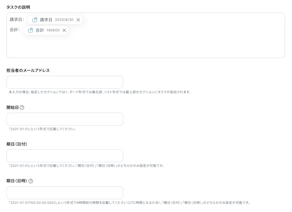 もちろん、請求日などをタスク名にすることも可能です。任意で変更しましょう。