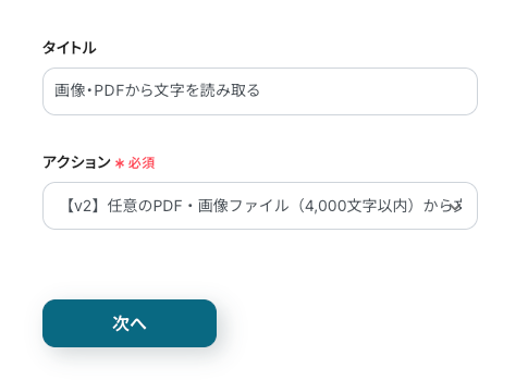 ※YoomのOCR機能では、アクション記載の規定の文字数を超えるデータや、文字が小さすぎる場合に正しく読み取れないことがあります。文字数や文字の大きさには少し余裕を持たせてご利用ください。