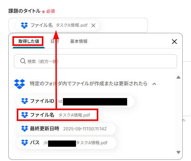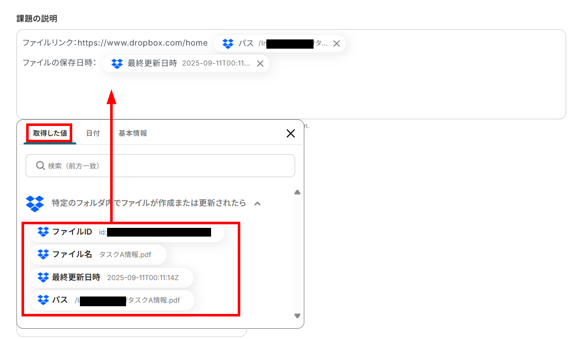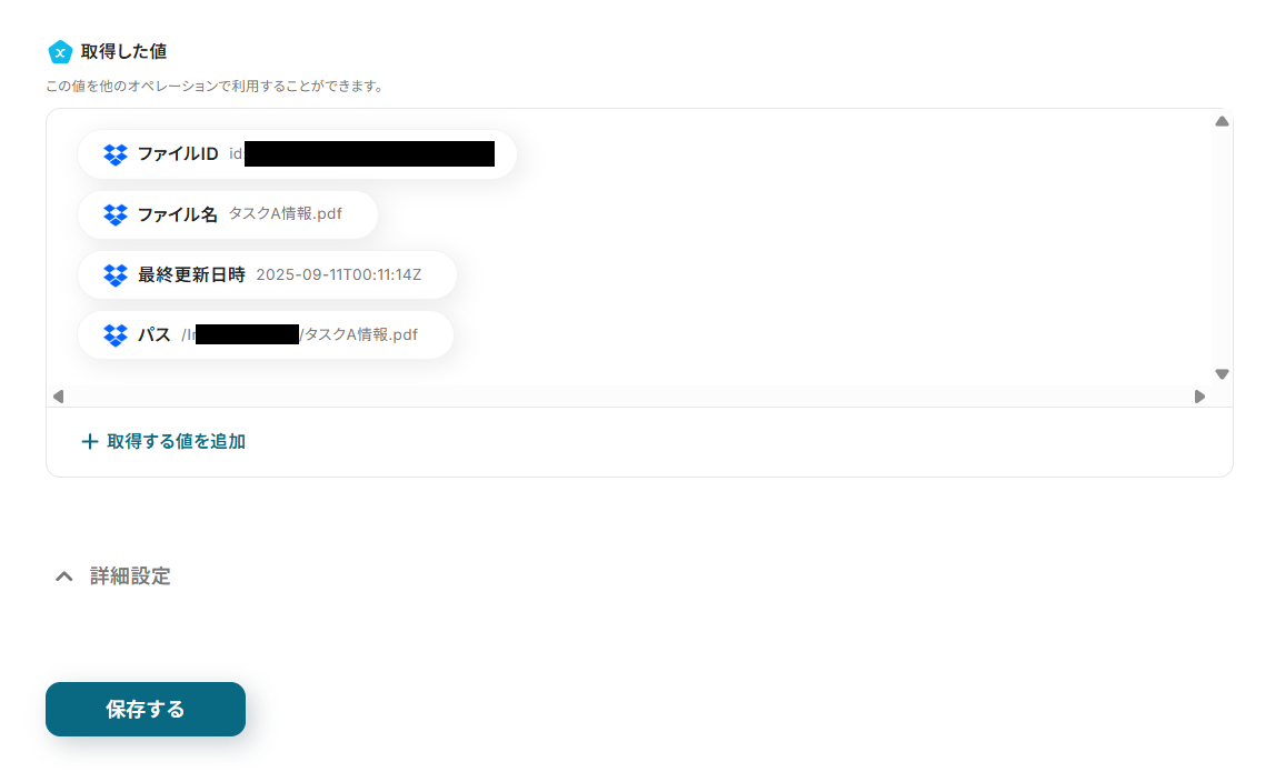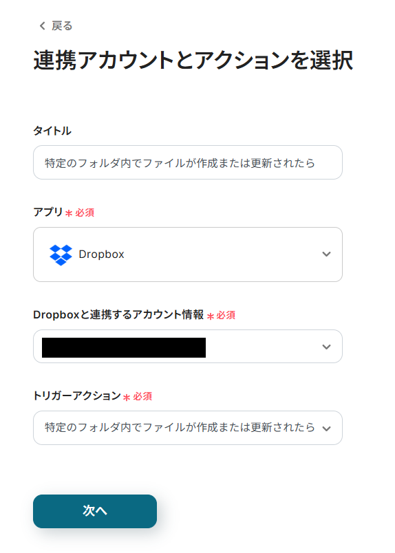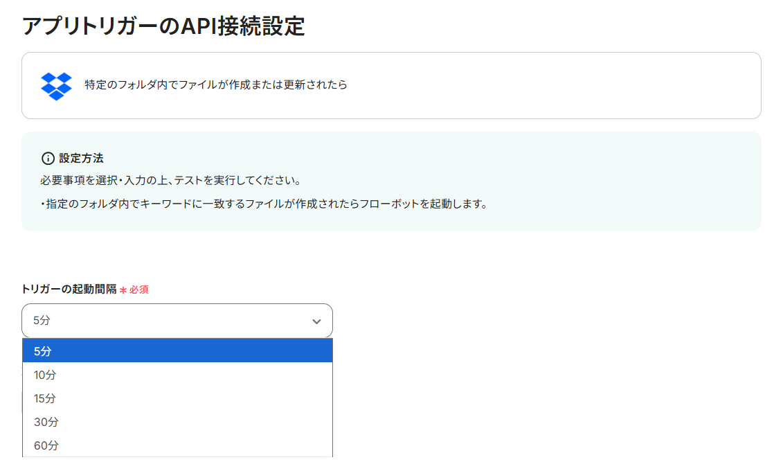 設定した時間間隔ごとに1度、Dropboxでファイルが作成または更新されたかを確認します。