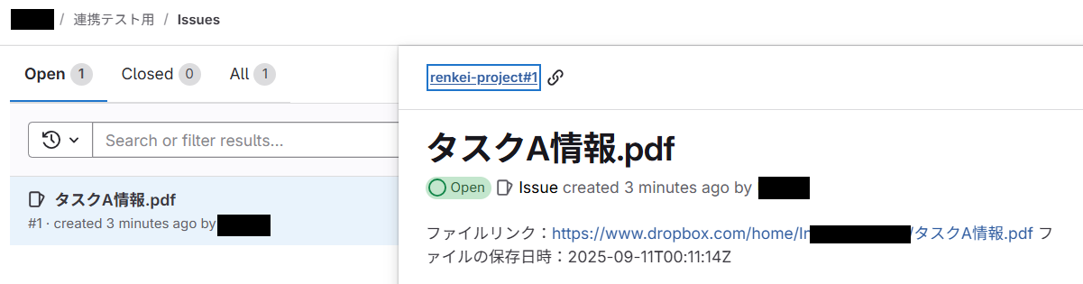 Dropboxにアップロードされた請求書や仕様書などをOCRで読み取り、抽出したテキスト情報をもとにGitLabにイシューを自動で作成することもできます。