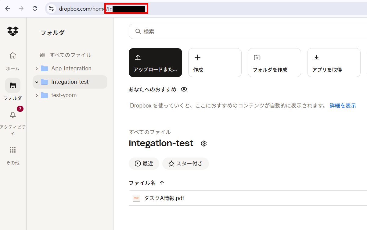 ここで、Dropboxに移り、連携したいフォルダにファイルを保存しておきましょう。