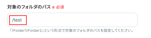 Yoomの画面に戻ります。 対象のフォルダパスに先ほどファイルをアップロードしたフォルダのパスを入力してください。