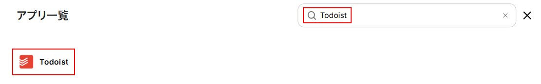 「+新規接続」ボタンをクリックし、入力欄に「Todoist」と入力したら表示されたアプリをクリックします。 すでにTodoistにログインしている場合は、アプリをクリックするとマイアプリ連携が完了します。