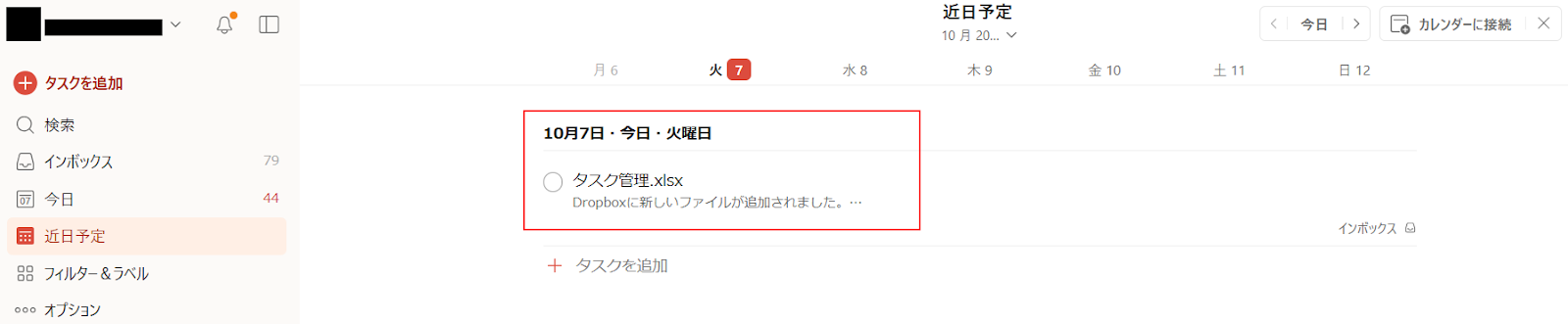 また、Todoistにタスクが作成されていますので確認しておきましょう。