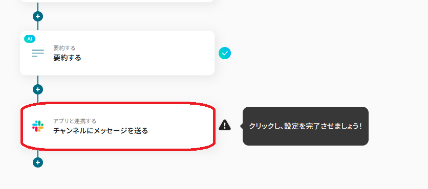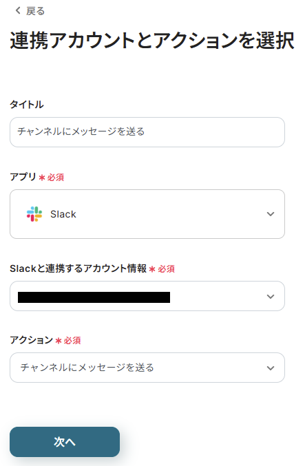 アクションが「チャンネルにメッセージを送信する」になっていることを確認します。