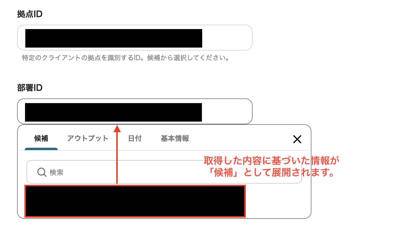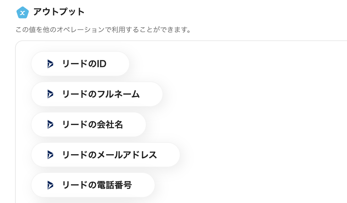 アウトプット情報は、「この値を他のオペレーションで利用することができます。」という注釈の通り、この後のステップで引用・活用できます。