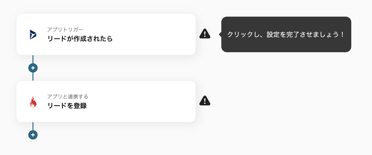 (1)最後に2つ目のアクション「リードを登録」をクリックします。