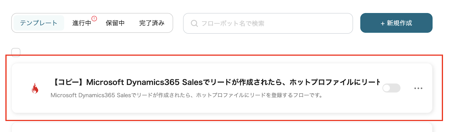 それでは、実際に「Microsoft Dynamics365 Salesでリードが作成されたら、ホットプロファイルにリードを登録する」のテンプレートを使ったフローボットを作成していきましょう。