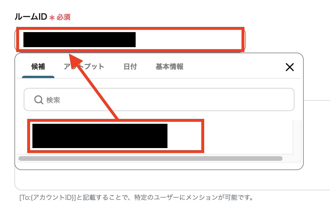 レポートの通知先となる「ルームID」を選択します。