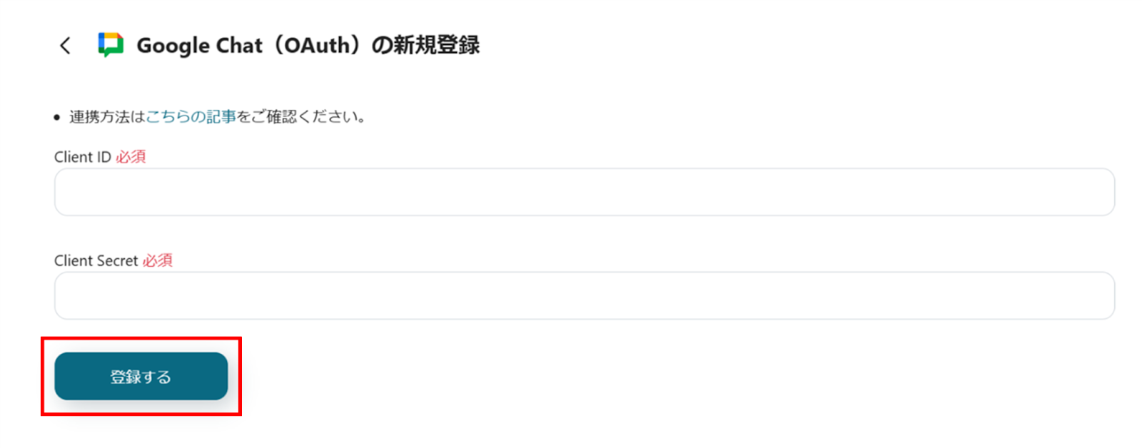 (6)以下の内容がでてくるので、Client ID、Client Secretを入力し、「登録する」をクリックします。
