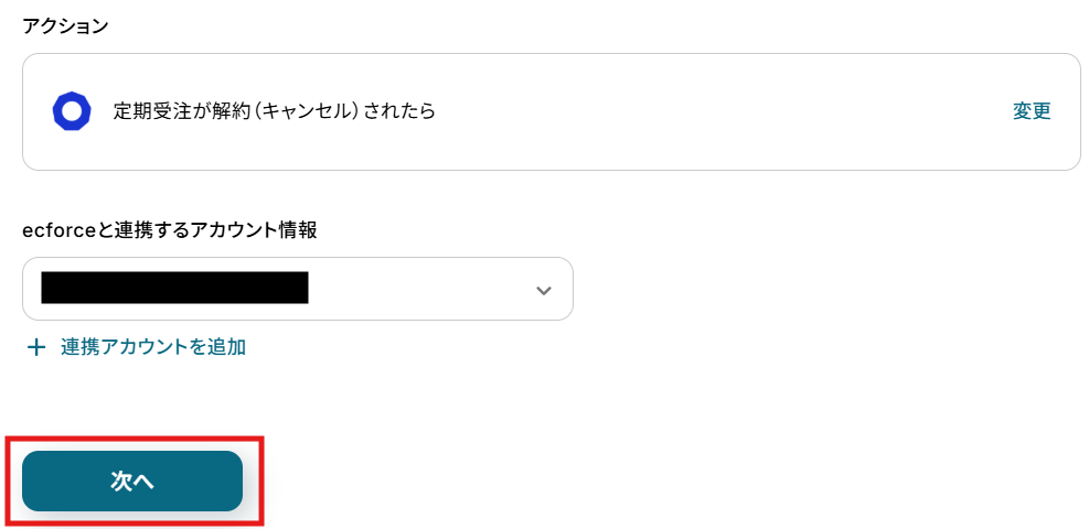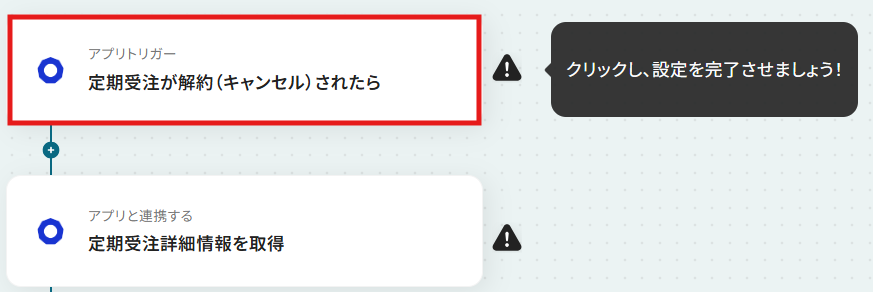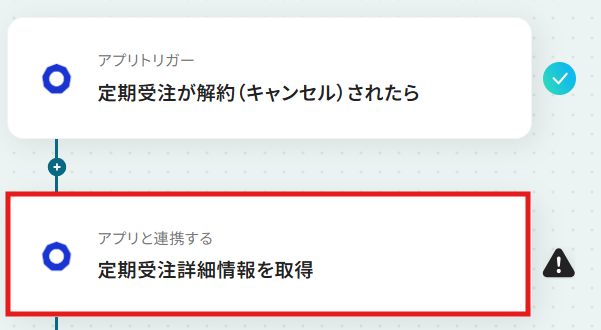 トリガーアクションは、「定期受注が解約(キャンセル)されたら」のままで次に進みましょう!