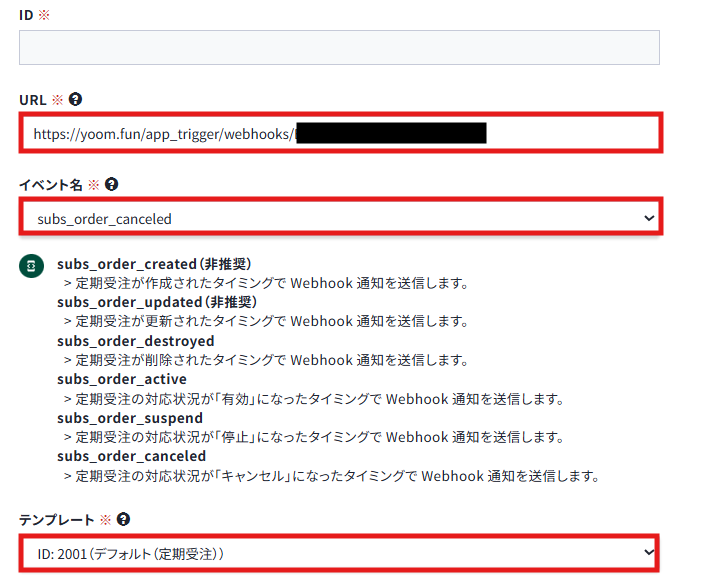 Yoomの操作画面からコピーしてきた、Webhook URLを貼り付けてください。