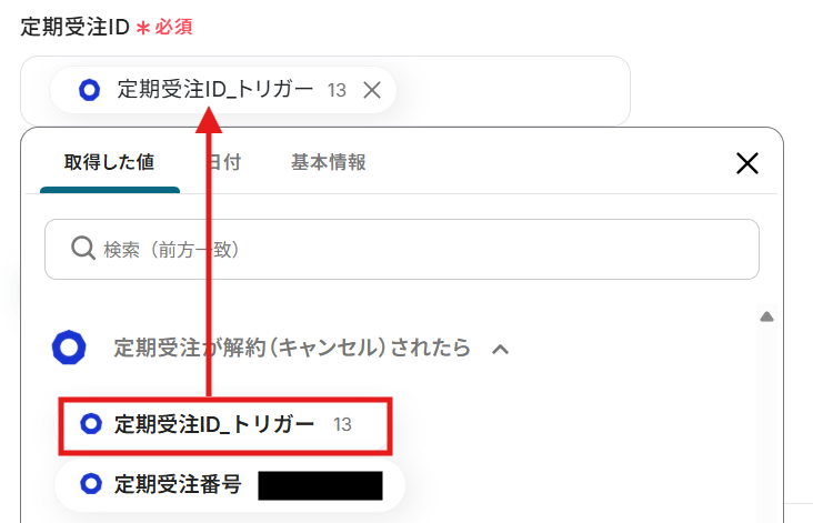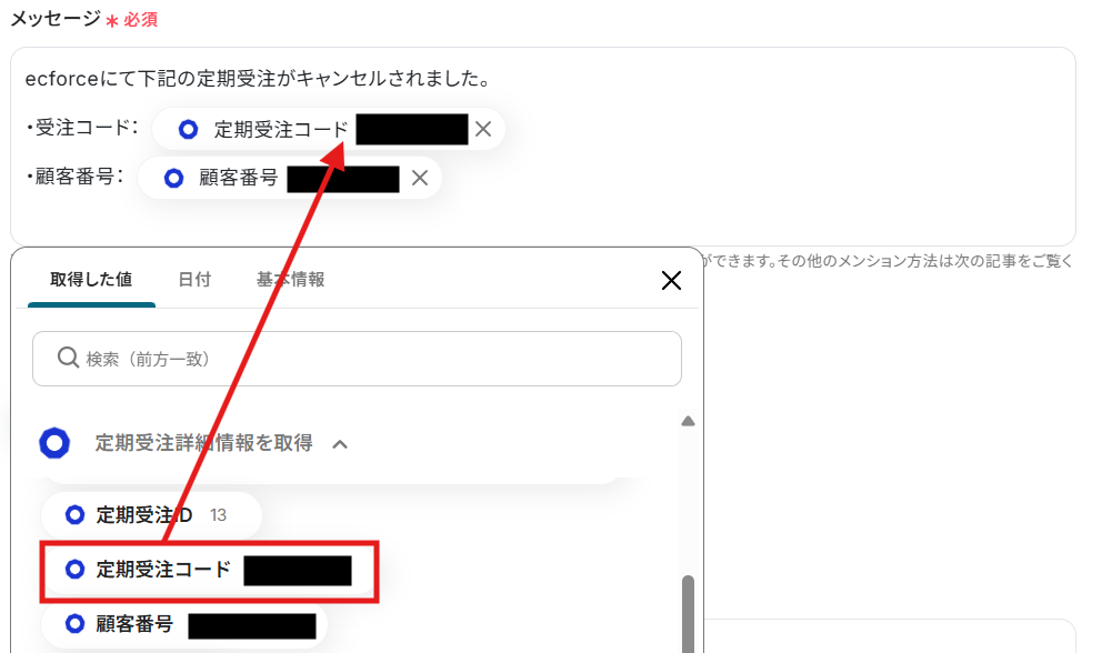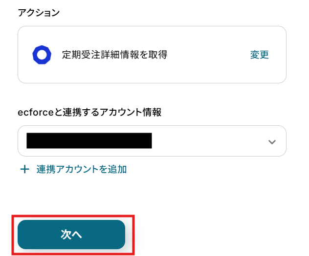 次に、ecforceで解約処理した定期受注の詳細情報を取得する設定を行います。