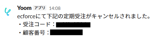 今回ご紹介した連携は、Webhookを使用しているため、ecforceで定期受注が解約処理されると、おおよそすぐにSlackに通知が届きます。