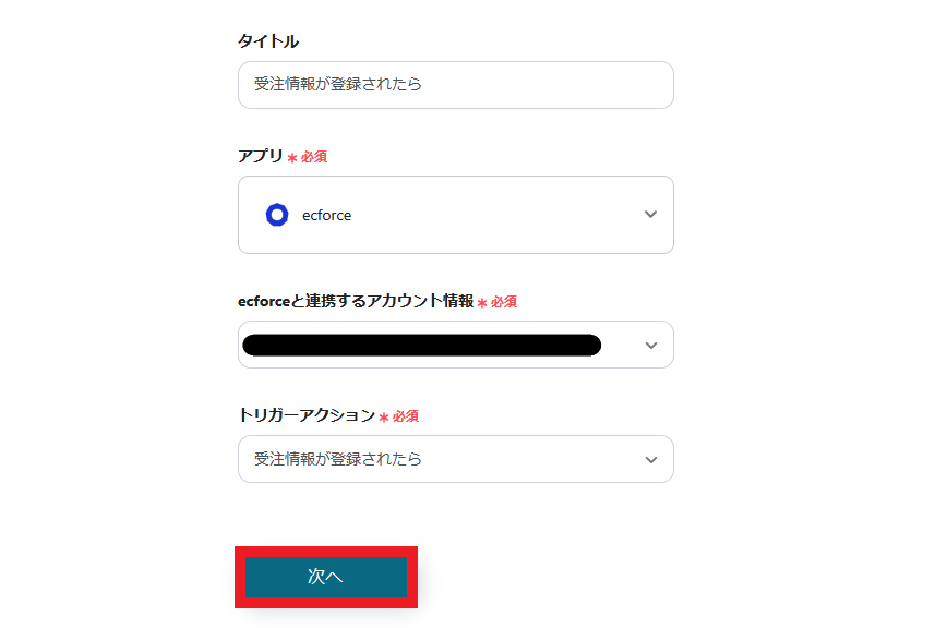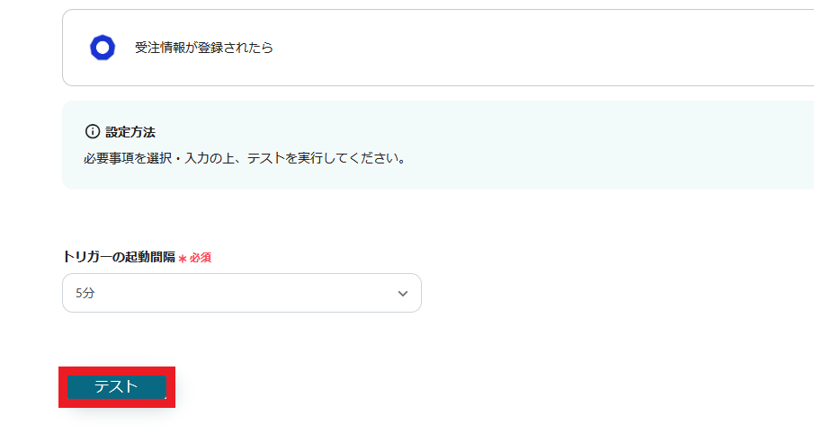 1.まず、一番上の「受注情報が登録されたら」をクリックします。