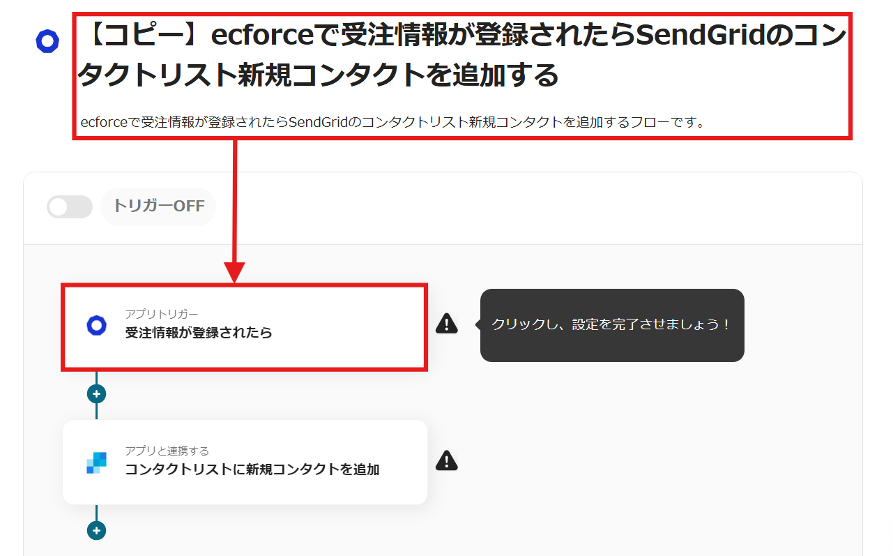 それではここからノーコードツールYoomを使って、「ecforceで受注情報が登録されたらSendGridのコンタクトリスト新規コンタクトを追加する」方法をご説明します。