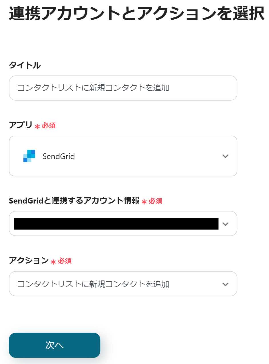 次に、SendGridの設定を行うため、「コンタクトリストに新規コンタクトを追加」をクリックします。
