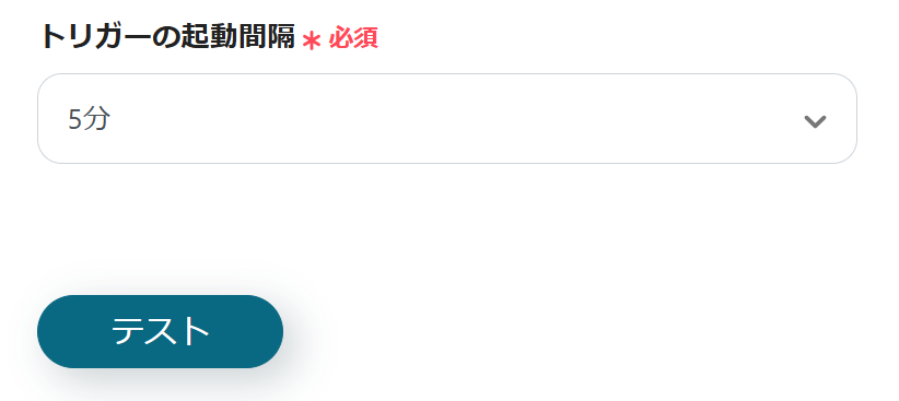 以下の画面が表示されたら、「トリガーの起動間隔」を設定しましょう。