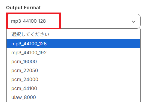 例えば「Output Format」では、プルダウンの中から音声データの形式を選択できます。