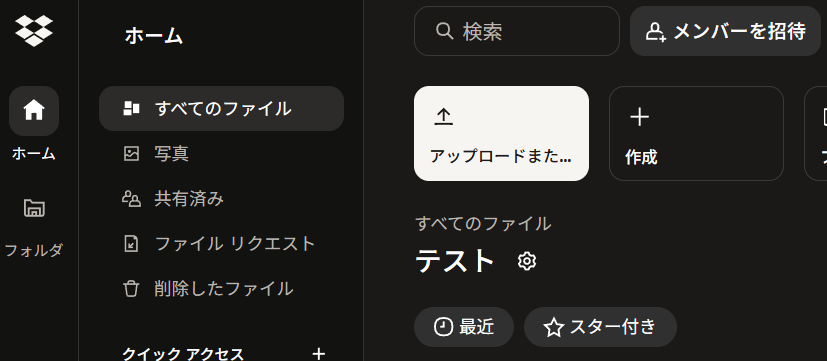 ここでは、Dropboxに作った「テスト」というフォルダを使用します。実際に使うDropboxのフォルダにアクセスして、URLからフォルダのパスをコピーしましょう。