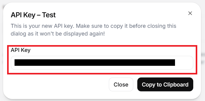 発行されたAPIキーをコピーして、Yoomのアプリ連携画面に貼り付けてください。