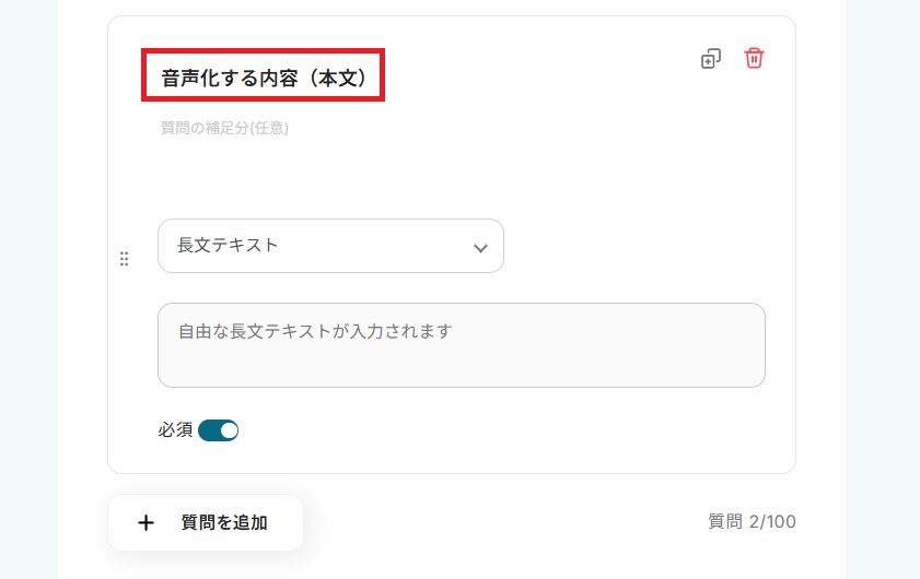 この部分もクリックで任意の内容に変更できます。ここでは、「音声化する内容(本文)」と入力してみました。