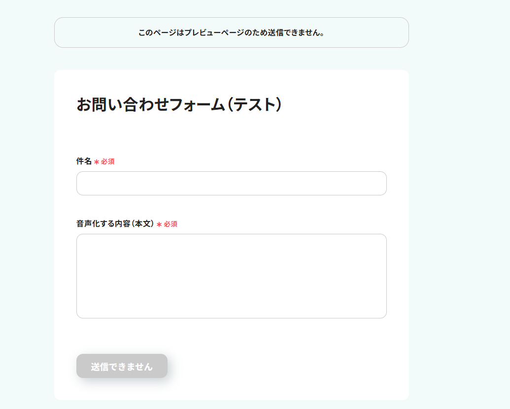 下にスクロールすると、「音声化する内容」という項目が出てきます。実際のお問い合わせフォームで入力される、本文にあたる部分です。
