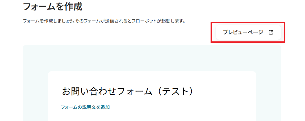実際にどのようなフォームができているか、新規タブが開いて以下のように確認できます。プレビューページの内容を確認したら、タブを閉じましょう。