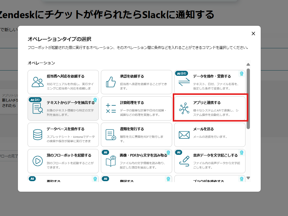 2.登録したいアプリ(今回はZendeskとSlack)を選択し、使用するアカウントでログインしてください。