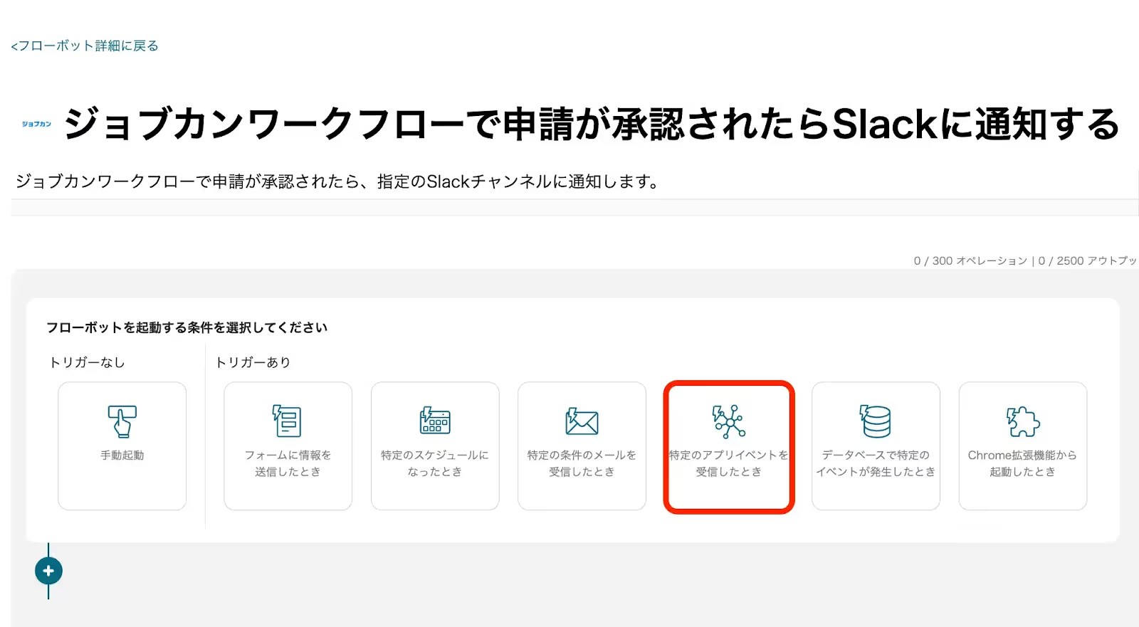 ジョブカン経費精算・ワークフローで特定条件の申請が作成されたら、Slackに通知する